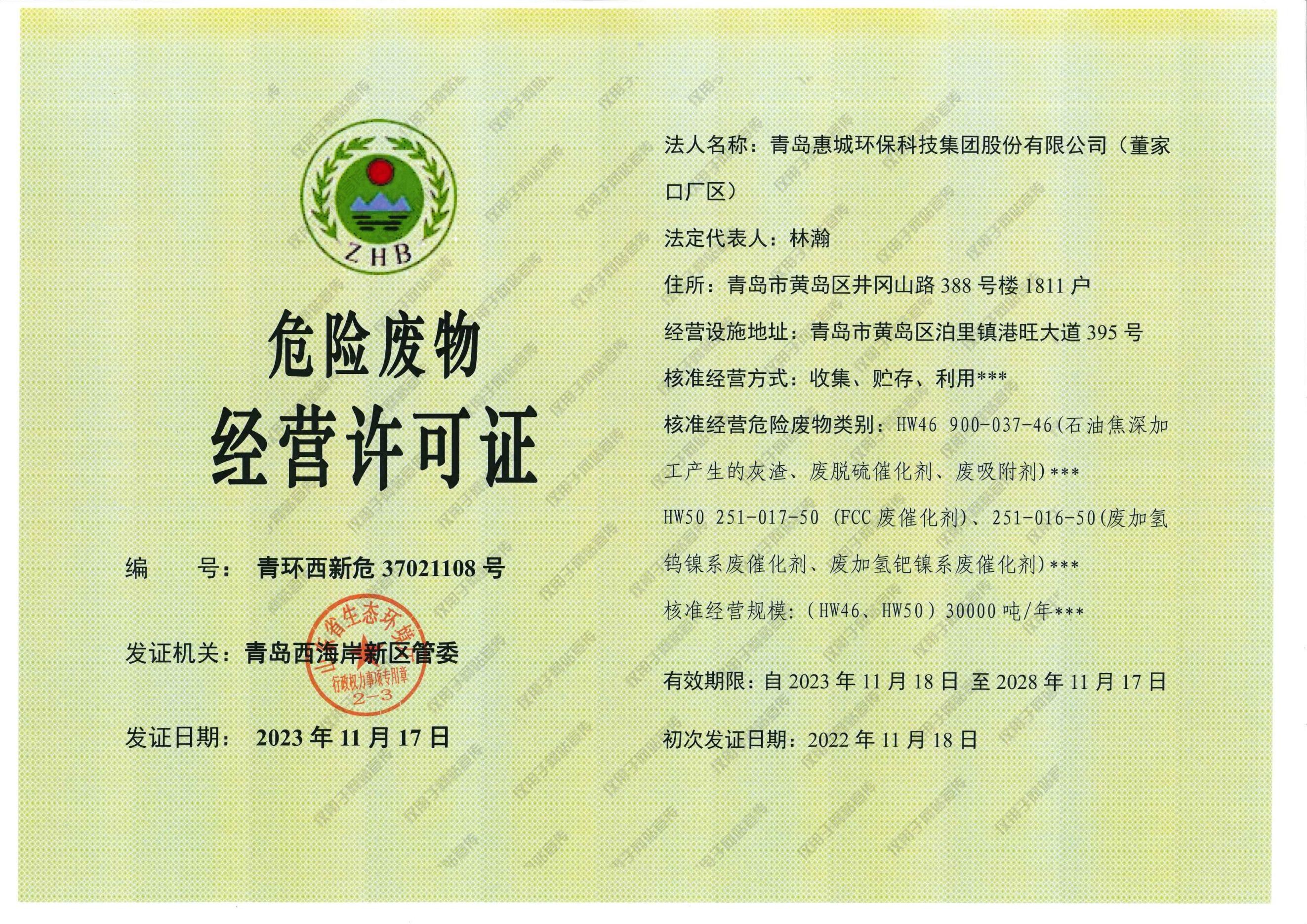 青島惠城環(huán)??萍技瘓F(tuán)股份有限公司
