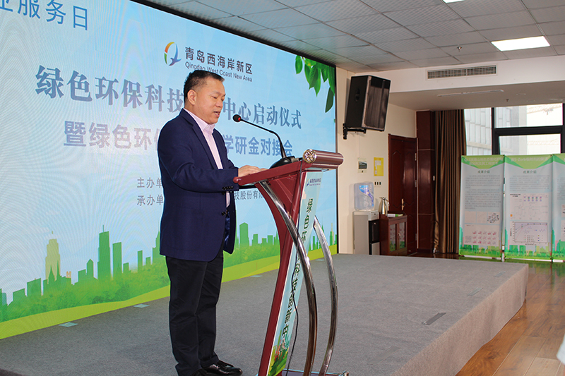 青島西海岸新區(qū)工信局副局長(zhǎng)張青宣讀《關(guān)于青島西海岸新區(qū)綠色環(huán)??萍紕?chuàng)新中心的批復(fù)》