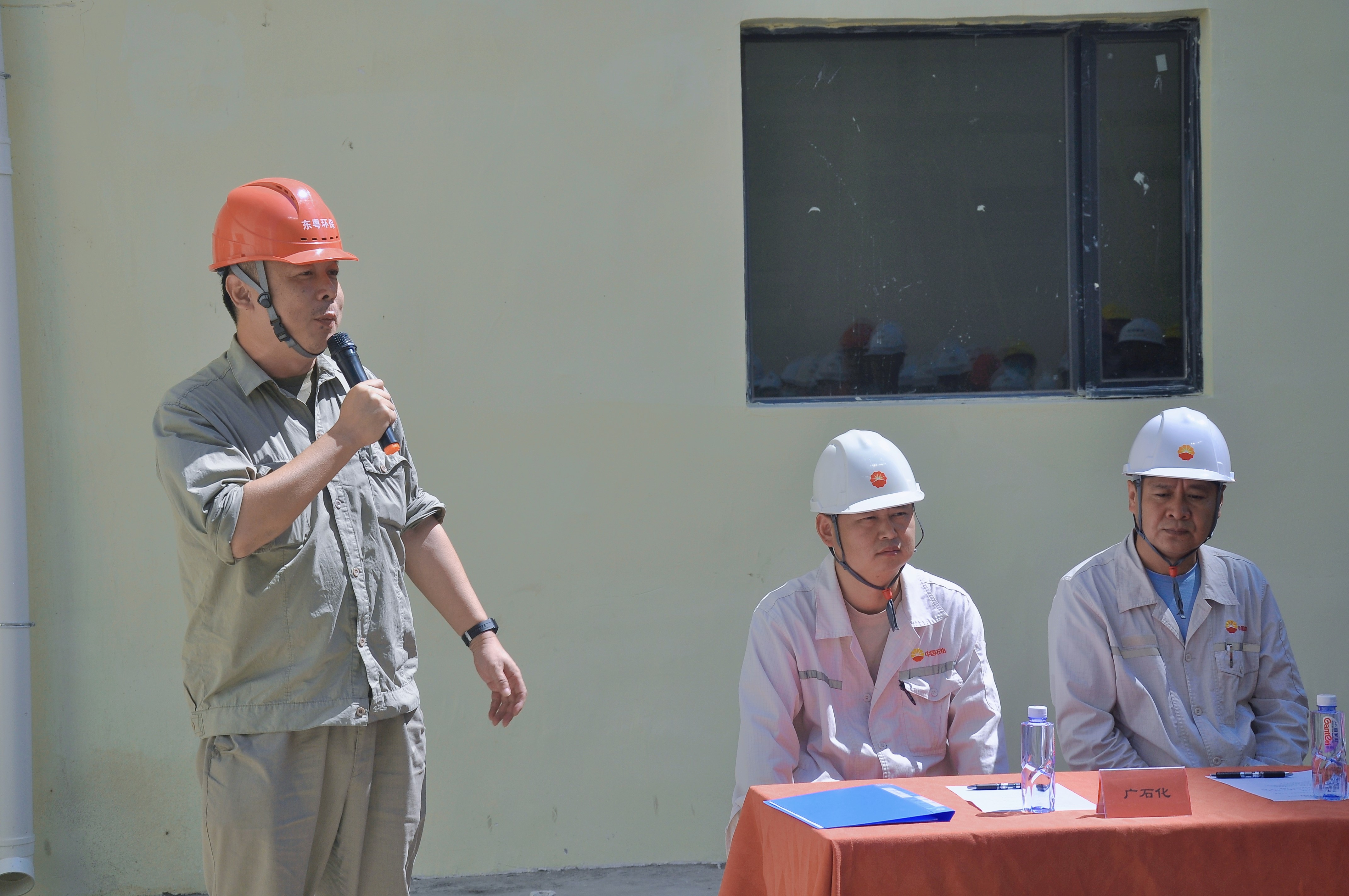 2022年9月15日上午十時許,在熱烈的掌聲中,廣東東粵環(huán)??萍加邢薰臼徒怪茪浠以C合利用項目前端裝置中交儀式在POX裝置區(qū)域隆重舉行。廣東石化工程管理部婁秀偉、趙兵團,中化四建項目經(jīng)理袁清溪,廣州石化監(jiān)理公司總監(jiān)席戰(zhàn)峰以及東粵環(huán)??偨?jīng)理李恩泉、總工程師吳聿列席參加。