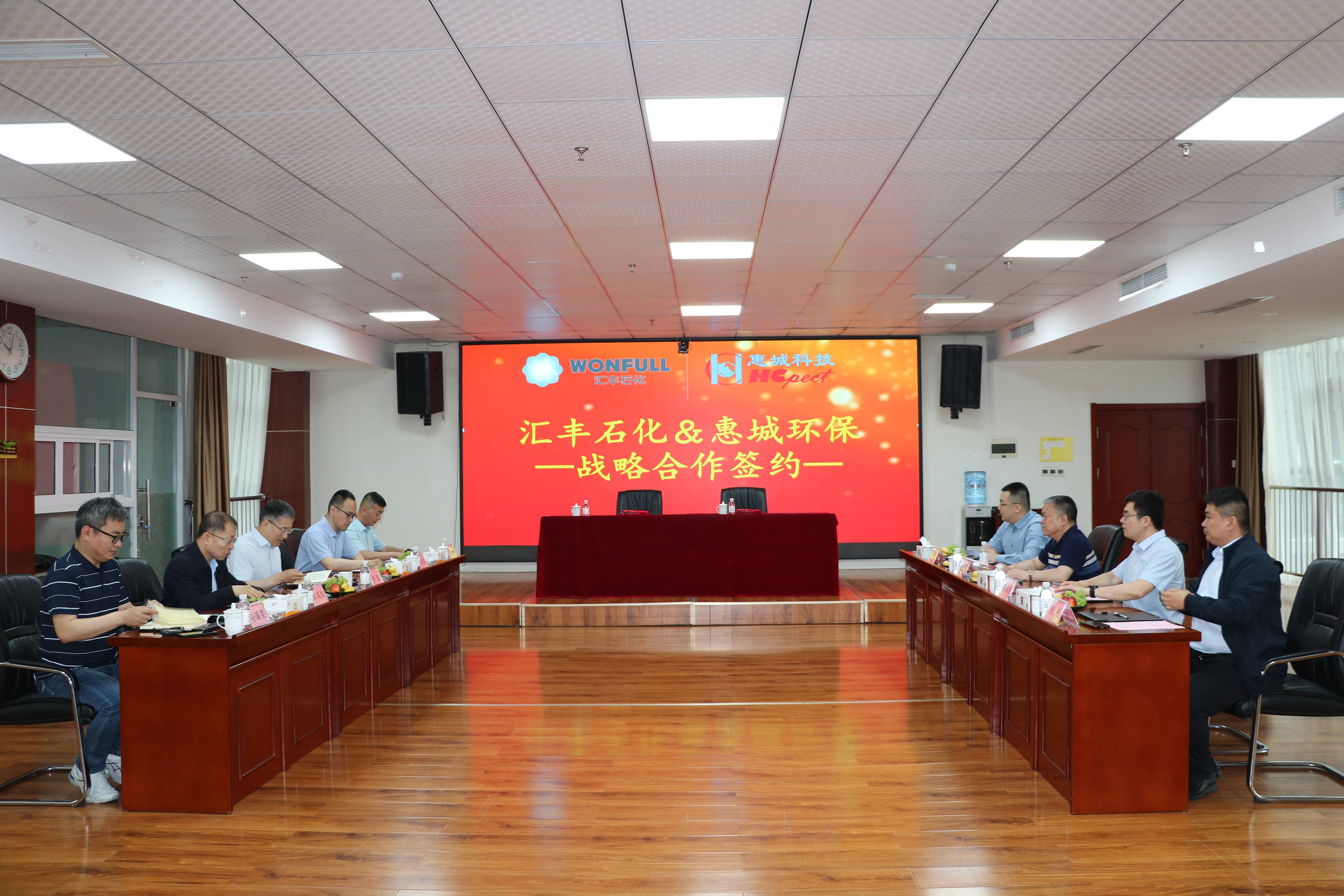 為進一步推動綠色循環(huán)經(jīng)濟高質量可持續(xù)發(fā)展,加快先進環(huán)保技術成果轉化落地,5月18日,青島惠城環(huán)??萍技瘓F股份有限公司(以下簡稱“惠城環(huán)?!保┡c山東匯豐石化集團有限公司(以下簡稱“匯豐石化”)戰(zhàn)略合作簽約儀式在惠城環(huán)保研發(fā)大樓418會議室隆重舉行。匯豐石化總裁李波、總工程師王瑞旭,惠城環(huán)保創(chuàng)始人張新功、總經(jīng)理林瀚等出席簽約儀式。