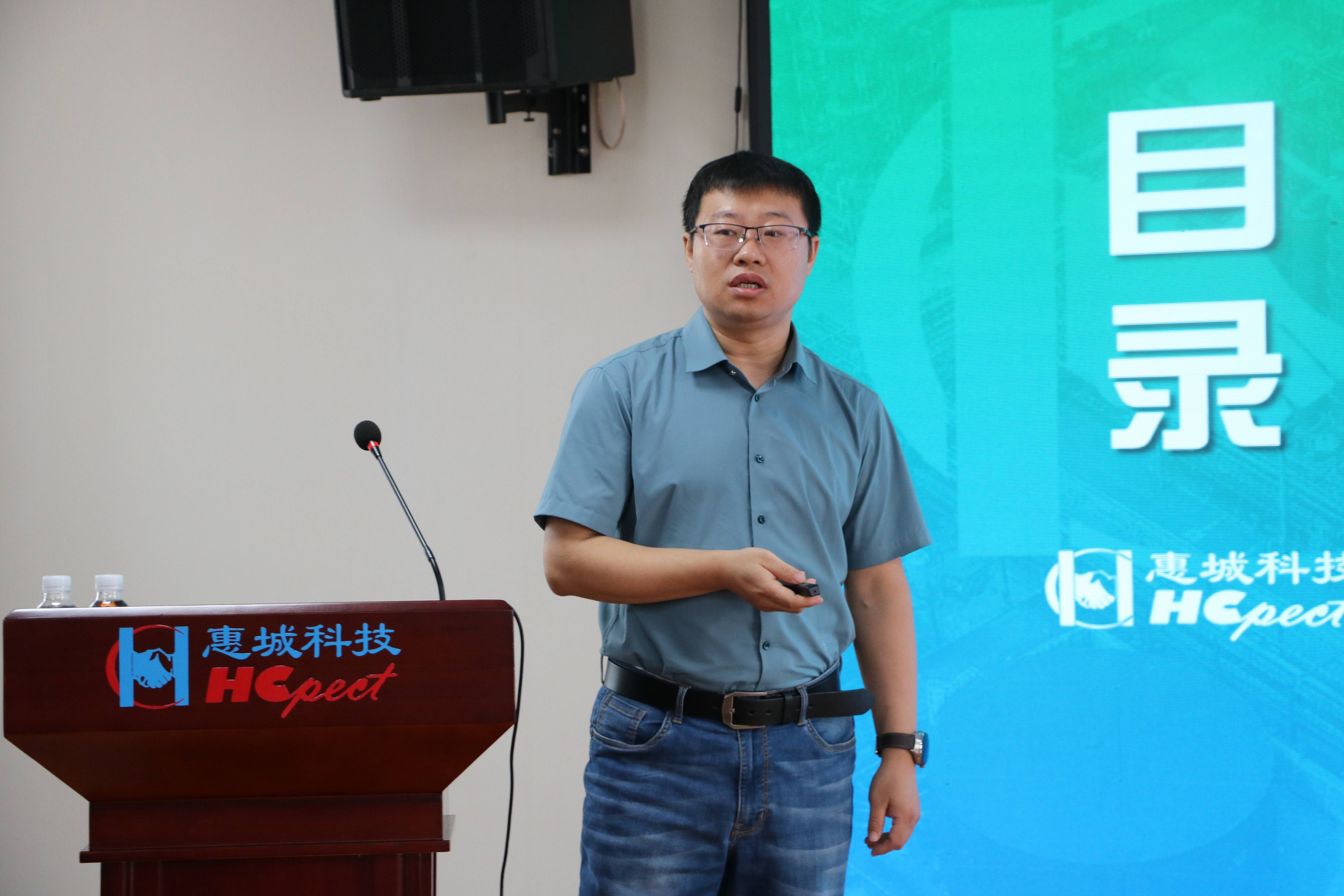 惠城環(huán)??偨?jīng)理助理李世鵬為新員工培訓(xùn)“集團(tuán)發(fā)展歷程、企業(yè)文化、職場新人角色轉(zhuǎn)換等”