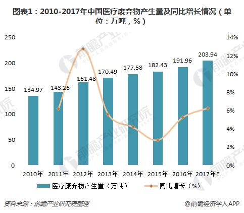 近年來,伴隨著醫(yī)學技術(shù)進步及人民生活水平、健康狀況的提高,臨床上大量使用一次性醫(yī)療衛(wèi)生用品,醫(yī)療廢棄物的產(chǎn)生量大幅提升。據(jù)前瞻產(chǎn)業(yè)研究院測算,2016年,我國醫(yī)療廢棄物產(chǎn)生量已達到191.96萬噸,同比增長5.22%。