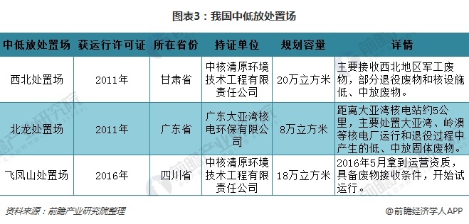 另外,以每年每臺核電機組產(chǎn)生60立方米固體廢物包計算,預(yù)計2020年我國每年將產(chǎn)生多達3480立方米的固體廢物。然而,我國目前僅有中低放核廢料處置場3座,分別為西北處置場、北龍?zhí)幹脠鲆约帮w鳳山處置場,其規(guī)劃容量分別20萬立方米、8萬立方米以及18萬立方米。因此,我國中低放處理能力十分緊缺,按照國務(wù)院印發(fā)的“十三五”生態(tài)環(huán)境保護規(guī)劃,提出要建設(shè)5座中低放射性廢物處置場。