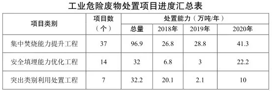 其中重點工程,圍繞提升危險廢物集中處置能力,重點實施集中焚燒能力提升工程、安全填埋能力優(yōu)化工程、突出類別利用處置工程等三大工程。組織各地建立健全重點工程項目庫,并采取滾動實施、動態(tài)調(diào)整方式,形成竣工一批、實施一批、儲備一批的項目推進機制。重點推動實施工程項目58個,預計投資98億元。其中,集中焚燒能力提升工程項目37個,共可新增能力96.9萬噸/年;安全填埋能力優(yōu)化工程項目14個,共可新增能力32萬噸/年;突出類別利用處置工程項目7個,共可新增能力32.2萬噸/年。