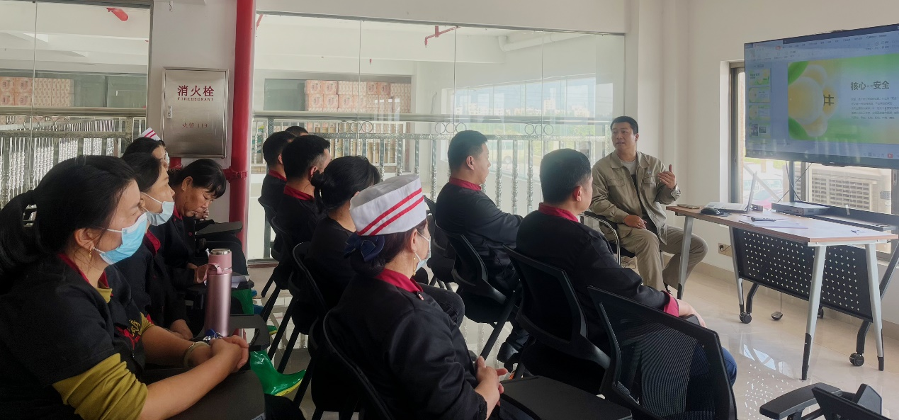 隨后,HSE管理部安全員朱宏杰于職工書屋對(duì)廚房工作人員進(jìn)行安全教育,從廚房危險(xiǎn)源辨識(shí)、事故預(yù)防、設(shè)備操作等方面詳細(xì)地進(jìn)行講解,他強(qiáng)調(diào):“大家一定要重視電、火、器具的使用安全,注意安全是對(duì)自己負(fù)責(zé),也是對(duì)他人負(fù)責(zé)。在廚房無(wú)論進(jìn)行什么工作都需要嚴(yán)肅認(rèn)真,思想集中,比如在油鍋加熱過(guò)程中不可離開(kāi),在斬切食物時(shí)不得與他人交談,養(yǎng)成良好的習(xí)慣,確保自己和他人的安全。”